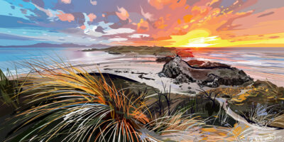 Best known for her uplifting colour palette and unique playful mark making, Beth’s digital vector drawings evoke fond memories and appreciation for the dramatic Welsh landscape. Challenging herself using the graphic pen and tablet, Beth utilises her graphic design skills gained after years of drawing logos. Beth loves the great outdoors and sees her landscape work as a celebration of Wales’ outstanding natural beauty.