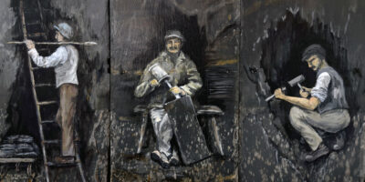 Brenda Jones, mountaineer and artist, rediscovered her passion for art and crafts following retirement. Living in the heart of North Wales she took inspiration from her exploits and the environment to develop her own artistic style, drawing upon the wild beauty of the region. She now produces art pieces that incorporate naturally occurring materials and recycles relics from Wales’ industrial past. It was while studying the slates recovered from the roof of her house that she was struck by the surface quality of old slate – its colour and texture, enhanced by years of weathering on top of the millennia of its formation. Reflecting, also, on the industry and human endeavour that has produced the slates, Brenda was drawn to want to understand and reveal the history and working lives of the slate workers.